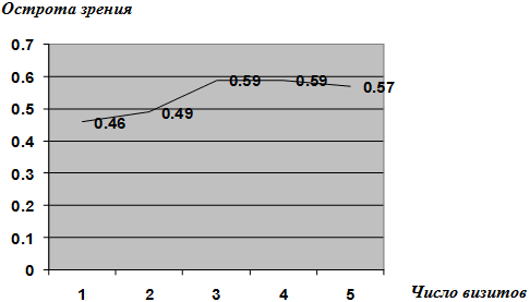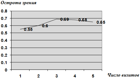 Рис. 1.Динамика средней остроты зрения с коррекцией на фоне лечения препаратом Фокус.