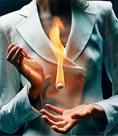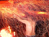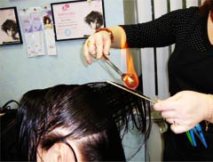 После этого волосы аккуратно, но тщательно «обжигаются» – прядь за прядью обрабатываются открытым огнем по всей длине. Огонь здесь выступает как катализатор – благодаря кратковременному нагреванию структура волоса «открывается» и целебные компоненты маски, которые также активизируются огнем, проникают до самой сердцевины волосяного стержня. Затем волосы ополаскиваются и на них наносится еще одна питающая и увлажняющая маска, особое внимание при этом уделяется их кончикам. Эта маска смывается ледяной водой, затем охлажденные волосы сушатся и укладываются.