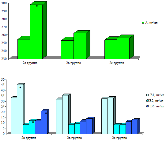 время как у пациентов, входивших в группы 2в и 2с, содержание витаминов в