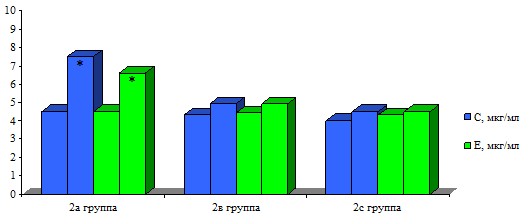 крови пациентов, выявившее его достоверное повышение в группе 2а, в то