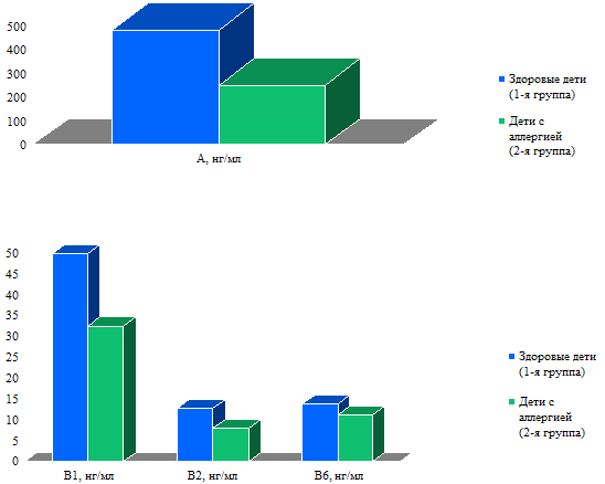 Концентрации витаминов в сыворотке крови детей с аллергическими заболеваниями