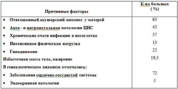 Основные причинные факторы развития ВД и кардиальных изменений у обследуемых детей и подростков приведены в таблице 2.