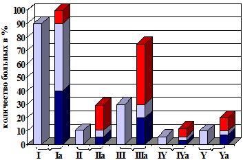 Статистический анализ результатов осуществляли стандартными методами. Для малочисленных групп, в которых количество больных было менее 10, использован метод статистического анализа Стентона Гланса [22]. Степень достоверности количественных показателей оценивали по t-критерию Стьюдента. Статистически значимыми считали различия при величине р<0,05.
