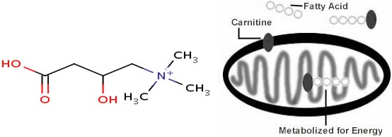 Образование доступной для клеток энергии (АТФ) происходит в митохондриях благодаря окислению глюкозы и жирных кислот. При этом дефицит энергии наступает не из-за недостатка субстрата, а из-за ограниченной пропускной способности митохондрий. Эффективность работы митохондрий во многом определяется количеством транспортировщика жирных кислот – L-карнитина. Карнитин образуется в организме человека эндогенно (при участии витамина С, витаминов В3, В6, В12, В9, железа, лизина, метионина и ряда ферментов), а также поступает с мясной пищей.