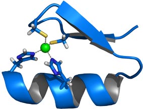 Рисунок 1. Структура типа «цинковый палец». Зеленая сфера – ион цинка.