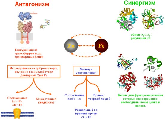 Рисунок 3. Результирующая схема антагонизма и синергизма цинка и железа.