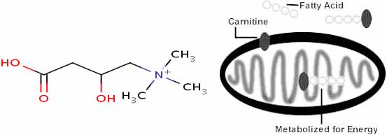 Образование доступной для клеток энергии (АТФ) происходит в митохондриях благодаря окислению глюкозы и жирных кислот. При этом дефицит энергии наступает не из-за недостатка субстрата, а из-за ограниченной пропускной способности митохондрий. Эффективность работы митохондрий во многом определяется количеством транспортировщика жирных кислот – L-карнитина. Карнитин образуется в организме человека эндогенно (при участии витамина С, витаминов В3, В6, В12, В9, железа, лизина, метионина и ряда ферментов), а также поступает с мясной пищей.