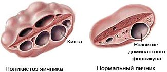 Поликистоз яичников приводит, как к нарушениям в обмене гормонов, так и к изменениям в яичниках. Внешне он проявляется усиленным оволосением, нарушениями менструального цикла или даже аменореей, отсутствием овуляции, бесплодием. При поликистозе снижена выработка (ФСГ), хотя уровень (ЛГ), эстрогена и тестостерона в пределах нормы или повышен. Считается, что низкий уровень ФСГ вызывает постоянное недоразвитие фолликулов, вырабатываемых яичниками, а потому и отсутствие зрелых яйцеклеток. При этом образуется множество фолликулярных кист размером до 6-8 мм, которые легко можно увидеть с помощью ультразвукового исследования (УЗИ). Пораженный яичник обычно увеличен в 2 раза, его поверхность покрыта гладкой белой капсулой, через которую не может пройти даже созревшая яйцеклетка. Это заболевание успешно поддается эффективному и адекватному лечению.